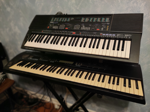I have two keyboards, an Alesis QuadraSynth Plus Piano and a Yamaha PSR 500. I have two add-on sound cards for the Alesis, a Pop-Rock and a Classical. Other equipment is an Alesis S4 QuadraSynth sound module, an Alesis MicroVerb 4 effects processor and an Alesis NanoCompressor. Also pictured, a Zoom R24 twenty-four multi-track recorder with sound processing, Sony Professional headphones, and JBL Control studio monitors. Sitting on top in the blue box is the Midiman USB Midisport 4x4 that connects everything to the computer. Not pictured is a Bolanle PH400 four channel headphone splitter and amplifier. Also connected is a Yamaha stereo system with a Klipsch 15 inch sub-woofer. And to control everything is a desktop computer system. Various software is used to compose/arrange the music, get it into the computer, lay down the tracks on the recorder, then mix, edit and process it, get it back to the recording equipment to create the master take, then send it back to software for final touches before release. It's quite a process! That software includes: MuseScore, Cakewalk Pro Audio, Audacity, MP3Tag, XMPlay, wxMP3Gain.